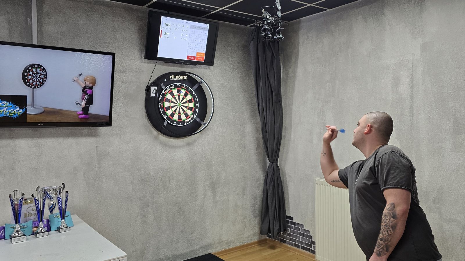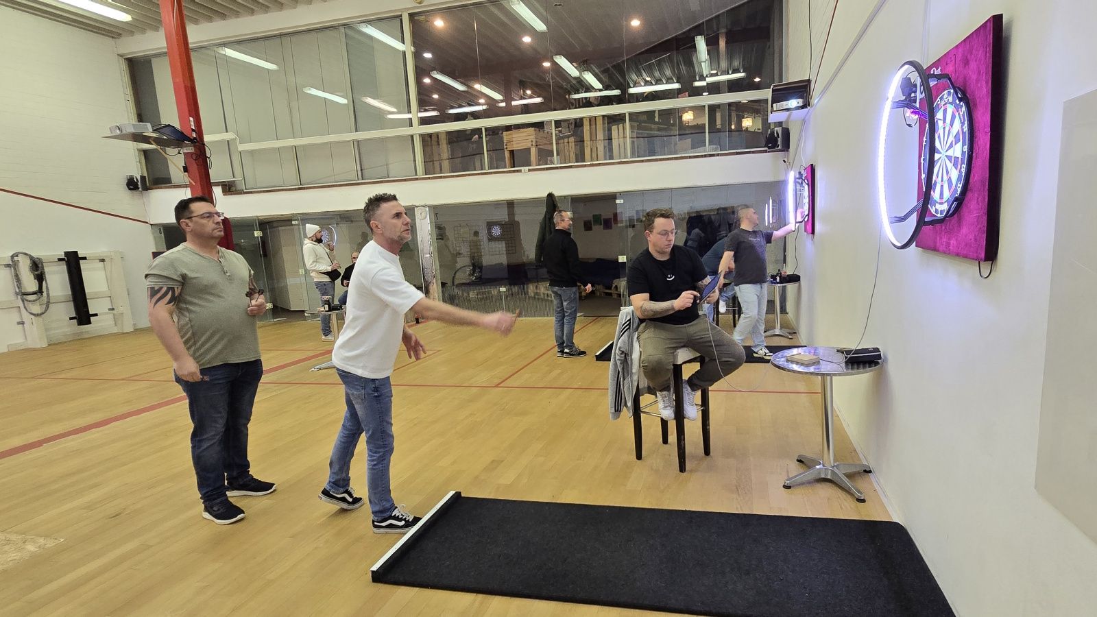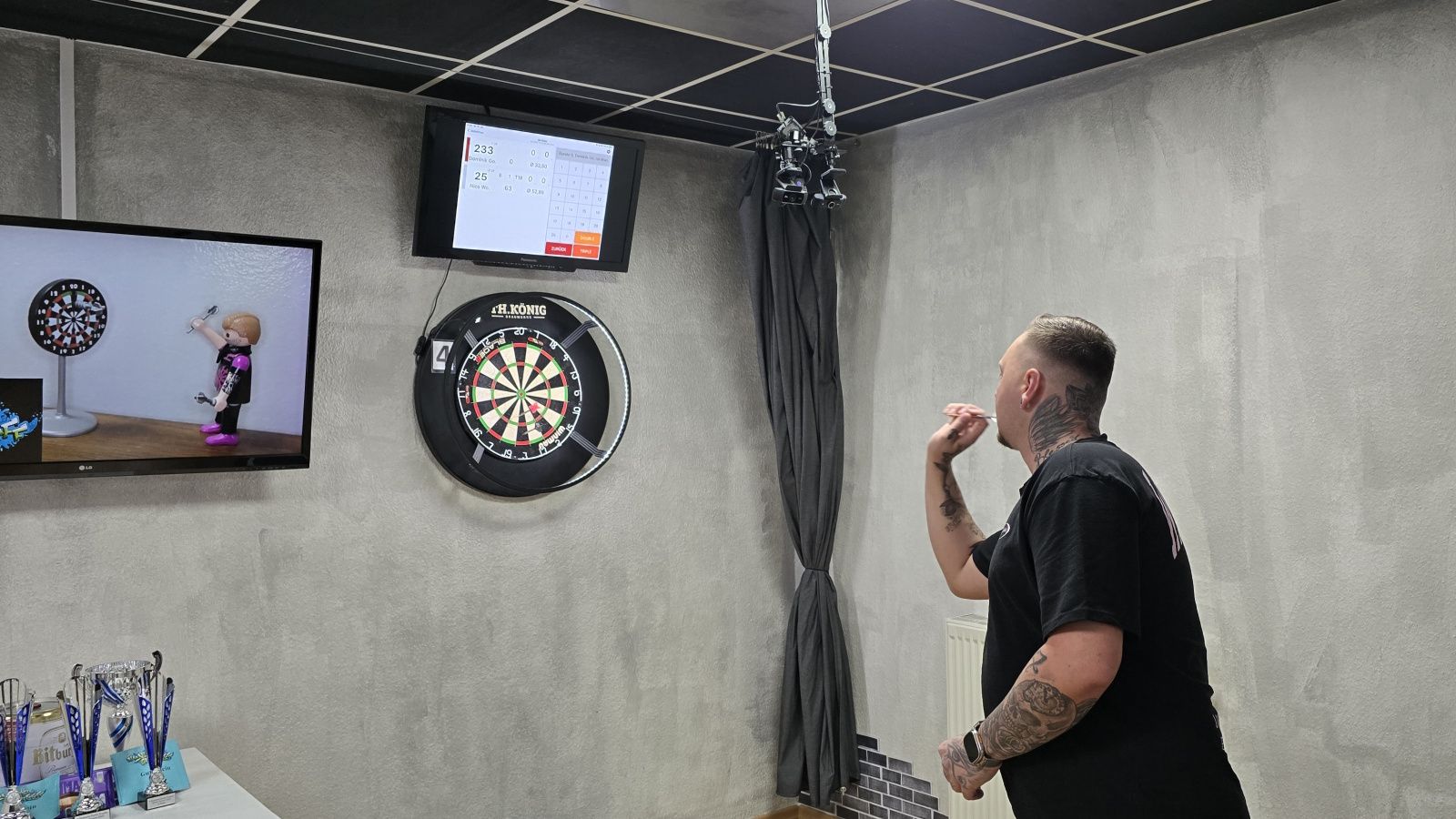 Neben Liga und Turnieren kann man natürlich auch „einfach so“ im Sporttreff ein paar Pfeile werfen. Für 5,- pro Person könnt ihr zeitlich unbegrenzt spielen – Pfeile und Scoring-Tablets inklusive. Eine Anmeldung (siehe Kontakt) ist erforderlich um ein freies Board zu buchen.