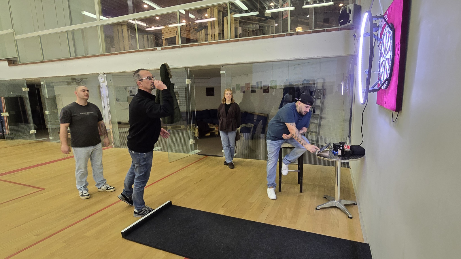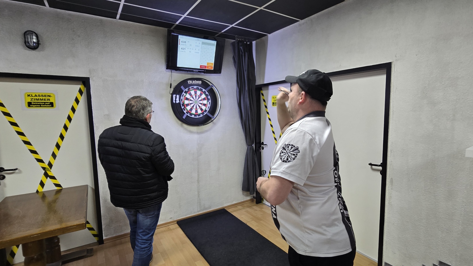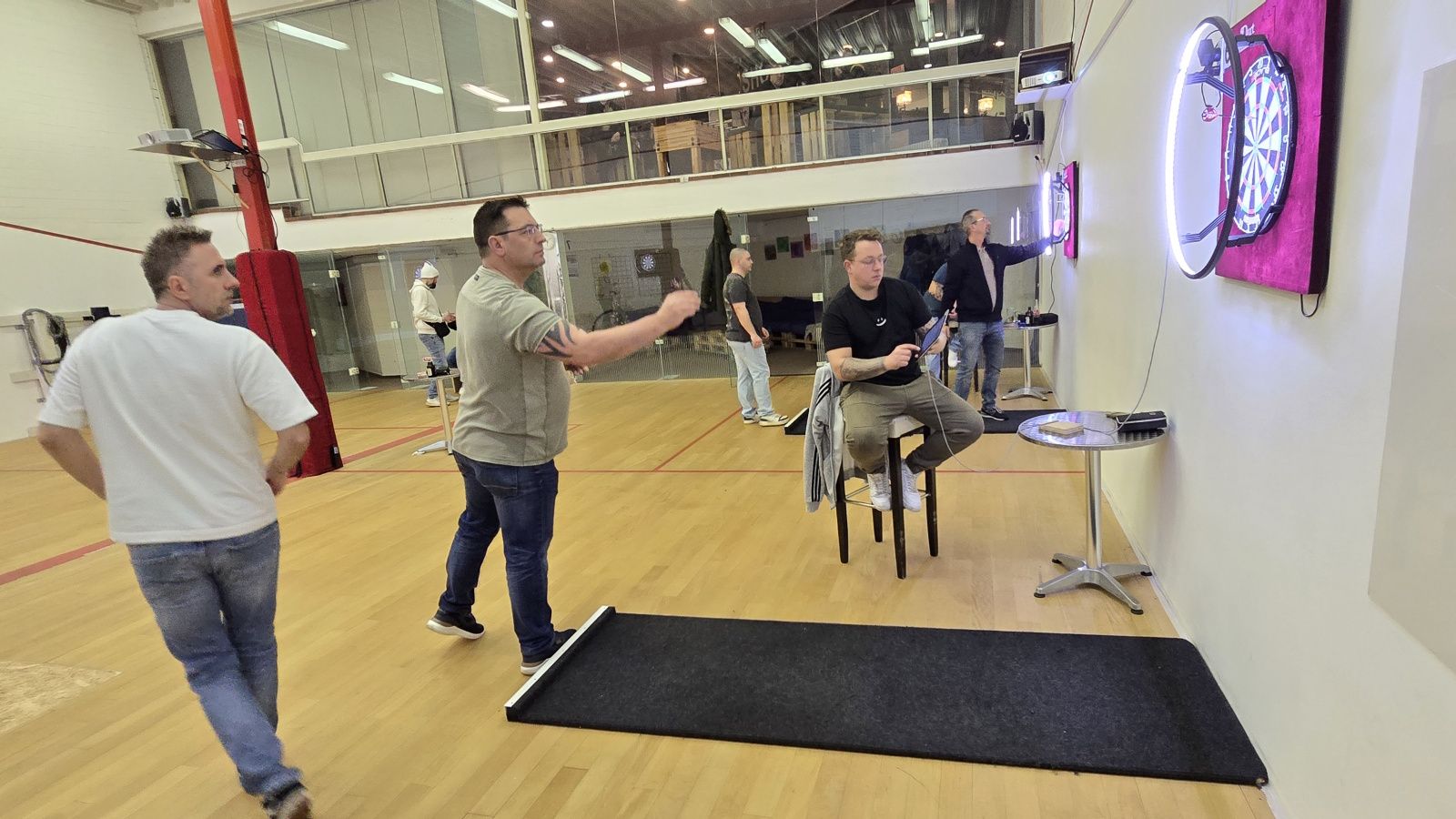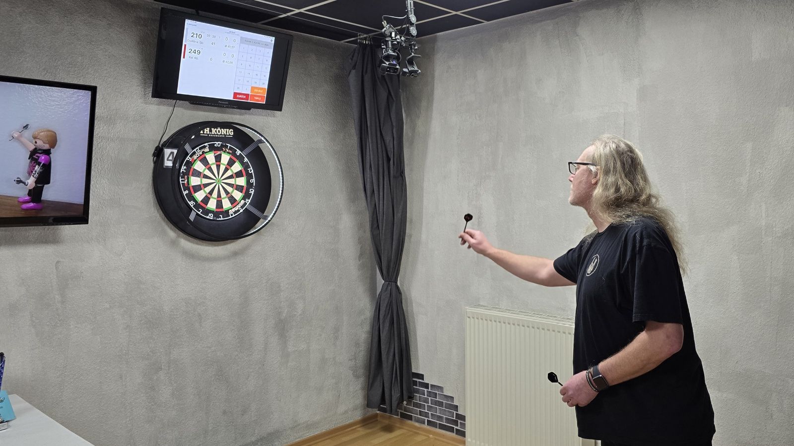 Neben Liga und Turnieren kann man natürlich auch „einfach so“ im Sporttreff ein paar Pfeile werfen. Für 5,- pro Person könnt ihr zeitlich unbegrenzt spielen – Pfeile und Scoring-Tablets inklusive. Eine Anmeldung (siehe Kontakt) ist erforderlich um ein freies Board zu buchen.