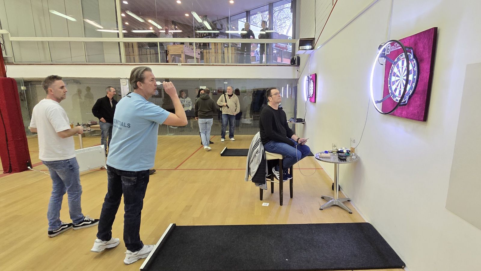 Im Sporttreff hat auch eine sehr rege Hobby-Dartszene aus Jung und Alt eine Heimat gefunden. Hier fliegen regelmäßig Pfeile ins Bullseye oder in die begehrten Triple-Felder. Was hinter dem Spruch „Triple ist funny, but double makes the money!“ steckt, kann hier in sehr entspannter Atmosphäre geklärt und erfahren werden.