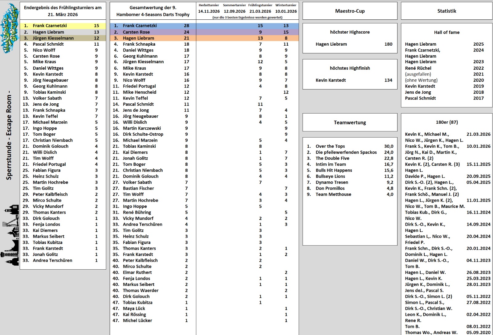 Frühlingsturnier der 9. Hamborner ‚4-Seasons Darts Trophy‘